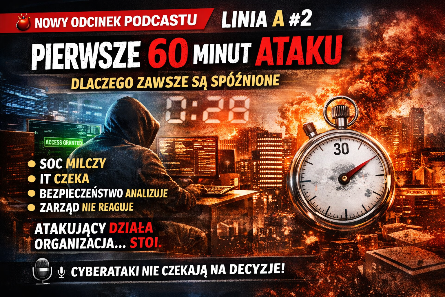 Co by się stało, gdyby jutro rano… nie działała poczta. nie działały systemy finansowe. nie działała logistyka. A kilka godzin później ktoś powiedział: wasze dane właśnie krążą po sieci. Nie w filmie. Nie w serialu. U was. Ten odcinek nie jest o ransomware. Jest o czasie. O chaosie. O decyzjach, które nie zapadają wtedy, kiedy najbardziej powinny. Rozkładamy pierwsze 60 minut ataku minuta po minucie: